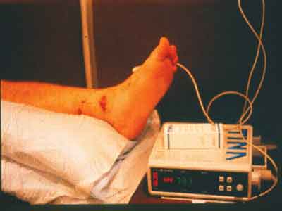 Απλό διάστρεμμα 2ου βαθμού. Λόγω του οιδήματος και της φλεγμονής η διαδερμική μέτρηση του Ο2 είναι 7 (Φ.Τ. 35 – 40 mmHg)